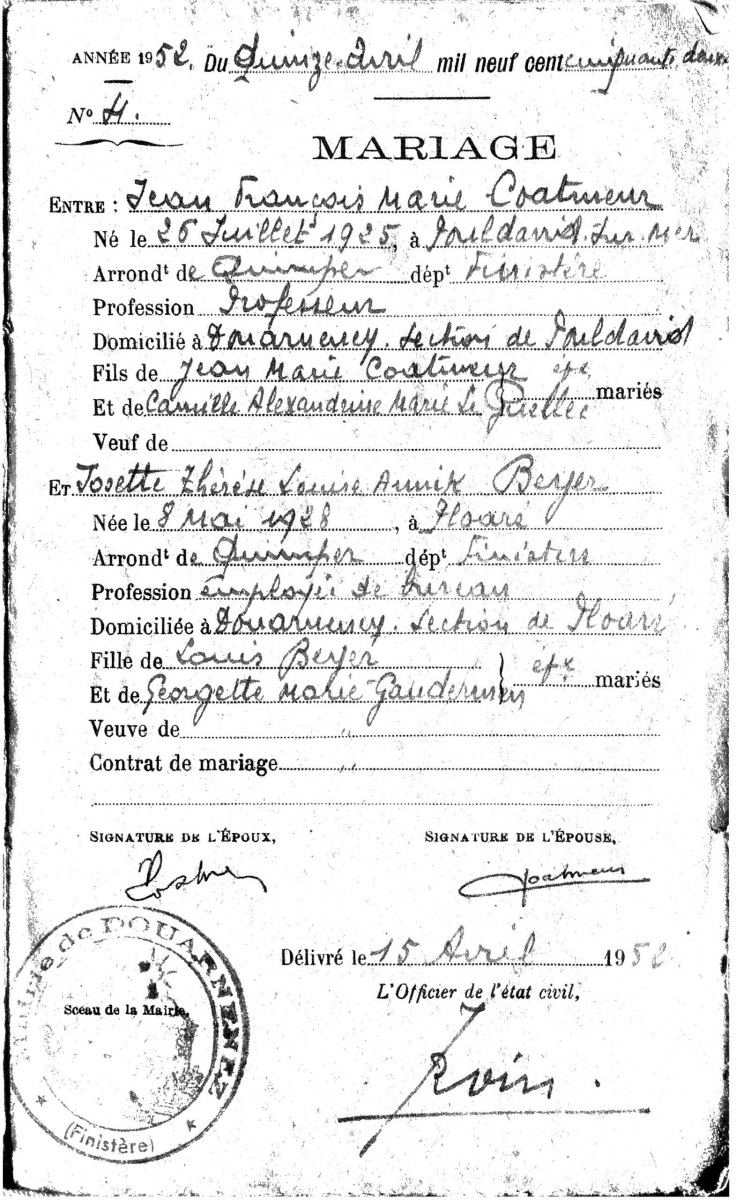 15 avril 1952 – mariage (état civil)